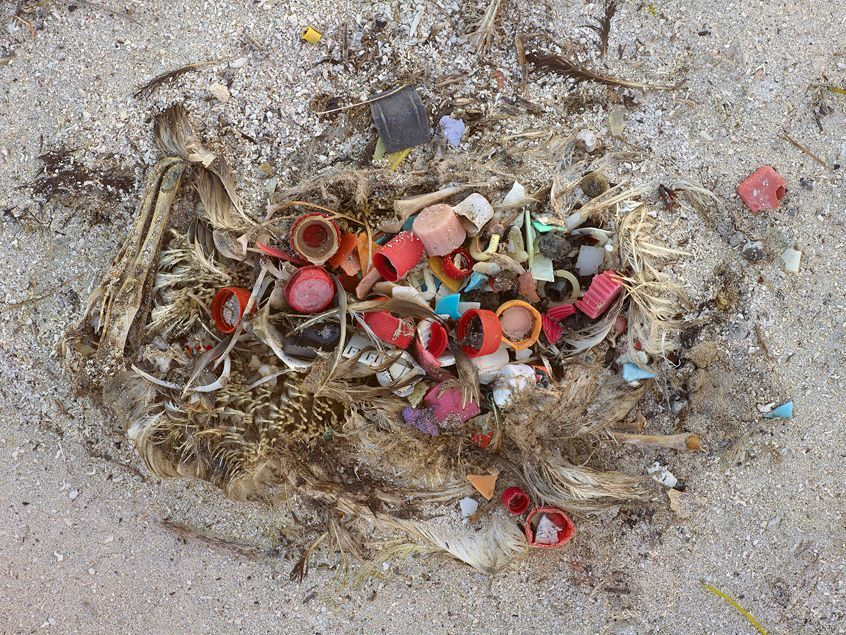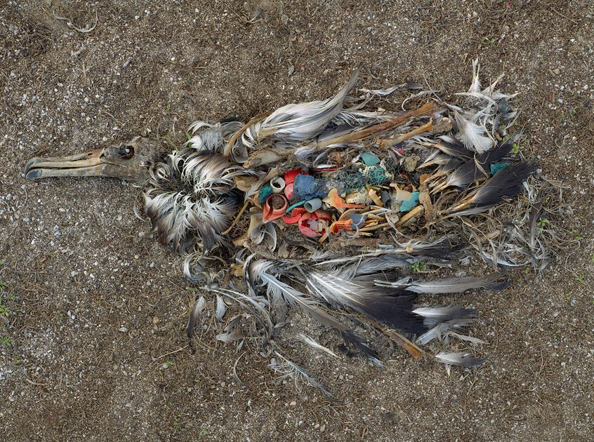 Les îles Midway sont des îles de l’océan Pacifique où les albatros grandissent sans avoir jamais vu un seul humain. Cela ne les empêche pourtant pas de mourir chaque année par dizaines de milliers, l’estomac gavé de morceaux de plastique. La pollution de l’océan Pacifique en déchet plastiques est telle que les parents albatros pêchant en mer pour nourrir leurs petits, confondent les déchets plastiques avec une nourriture potentielle.